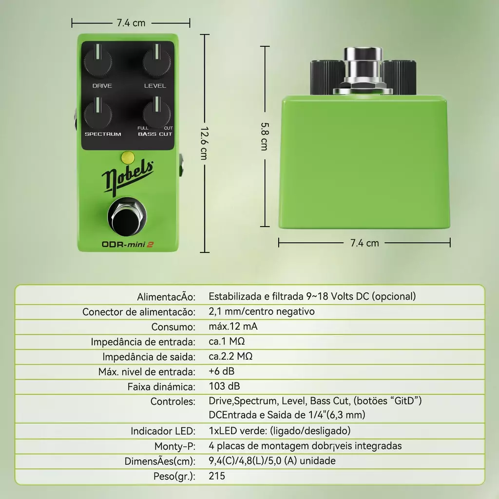 Pesando apenas 300g, o Nobels ODR-mini2 é ideal para pedaleiras compactas e músicos que valorizam qualidade sem abrir mão da portabilidade.