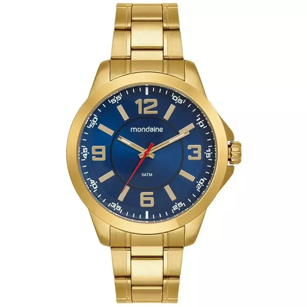 Relógio Mondaine Masculino Dourado Fundo Azul