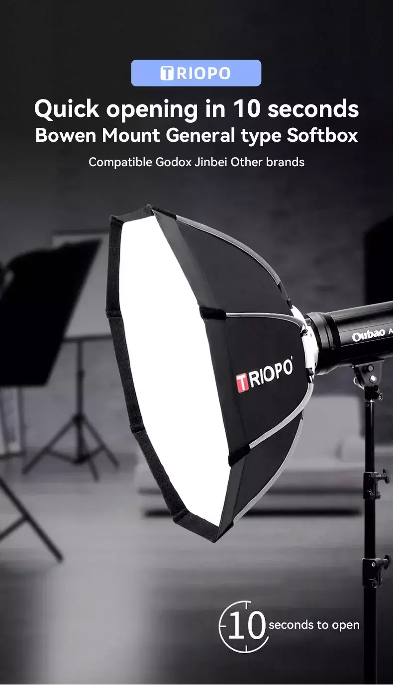 Triopo 55cm 65cm 90cm 120cm Dobrável Octagon Softbox – Iluminação Profissional e Versátil